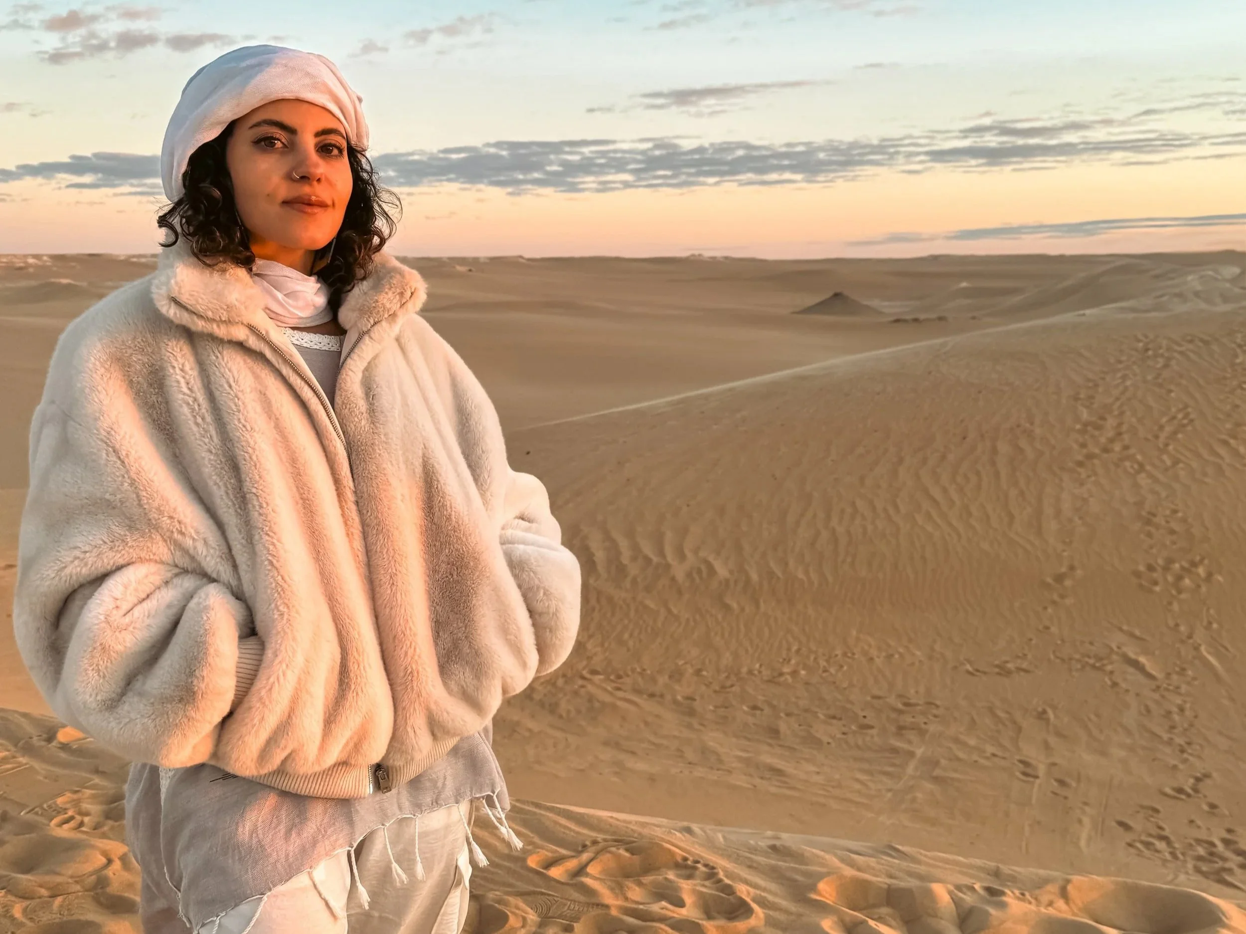 This is me in Siwa Oasis in November, wearing a fur coat. It was warm-ish during the day and cold/windy at night.